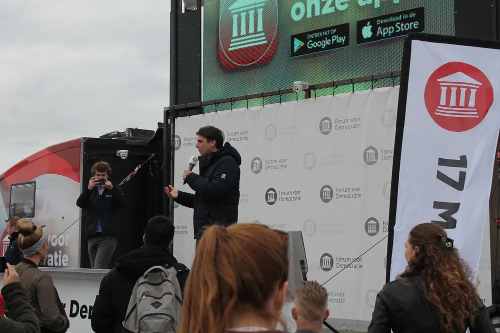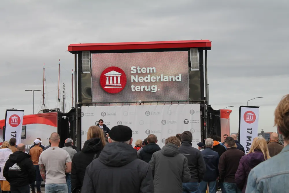 Forum voor Democratie heeft in een grote Amerikaanse trailer met een uitklapbaar podium een alternatief gevonden voor gesloten zalen en is vorige week gestart met de verkiezingskaravaan. Er is geen publicatie van een lijst met plaatsen die bezocht worden.