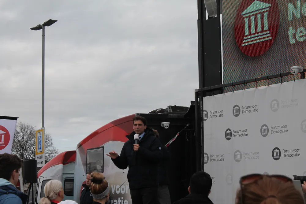 Het voertuig doet vandaag Harderwijk aan. Om 11:00 uur werd er geparkeerd aan de Havendijk. Tot 13.00 uur sprak de partijleider van Forum voor Democratie samen met statenlid in Flevoland, Anton de Lange, over van alles en nog wat. Het was vooral een moment van samen zijn met gelijkgestemden. Baudet en de Lange ontvingen regelmatig applaus. Na de speeches van de twee werd er een vragenrondje vanuit het publiek gedaan.